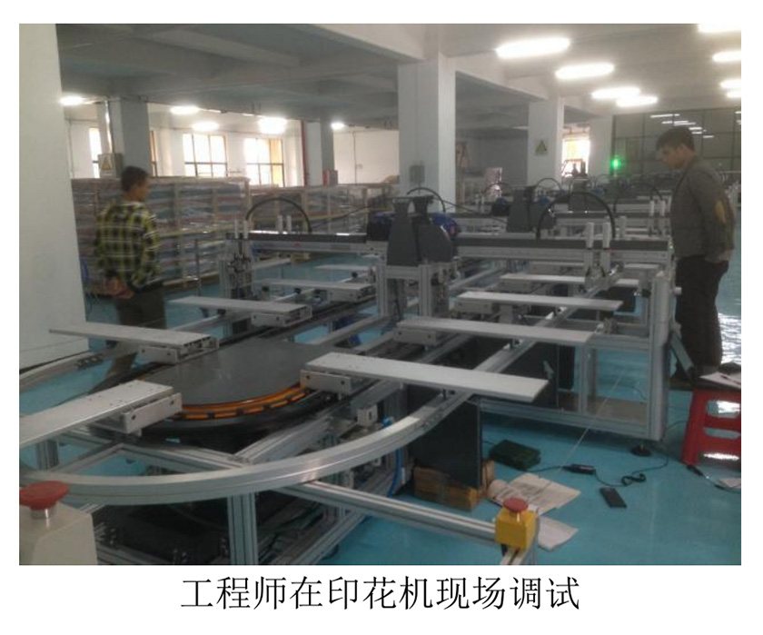 印花機可分為 8 色,12 色,24 色等等,顏色越多工位就越多,需要的電機和變頻器就越多,但應用起來也主要是分兩種應用,一個是主臺板的,一個是每個工位上的刷頭的,下面就逐一介紹一下。